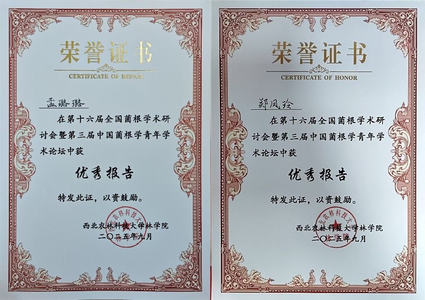 27日晚,我院博士研究生孟璐璐和郑凤玲分别以《丛枝菌根真菌(AMF)通过PtMYB14/PtMYBr1激活锰转运与抗氧化通路协同增强枳锰耐受性的分子机制》和《丛枝菌根真菌调控枳干旱的关键通路及SWEET基因家族效应研究》为题作学术报告,并荣获优秀报告。