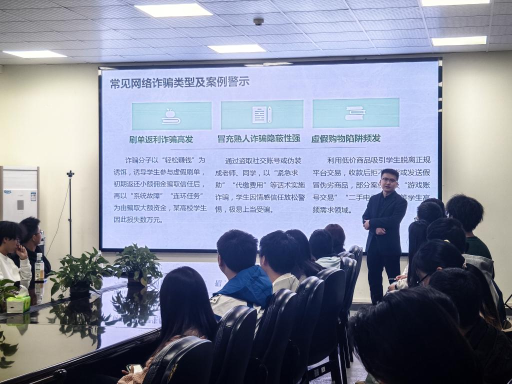 张颖旭围绕寝室安全管理、网络安全教育与学风建设等内容展开培训。他指出,寝室长作为学生社区管理的核心力量,应切实履行上传下达、纪律督导与关系协调等职责,定期组织内务整理与安全隐患排查,并主动关注室友心理状态。在网络安全方面,会议结合“刷单返利”“冒充熟人”等典型诈骗案例,警示同学们增强防范意识,注重个人信息保护,警惕异常消费行为。会议还明确要求全体寝室长带头落实“人离断电”“随手锁门”等安全措施,掌握基本火场逃生技能。