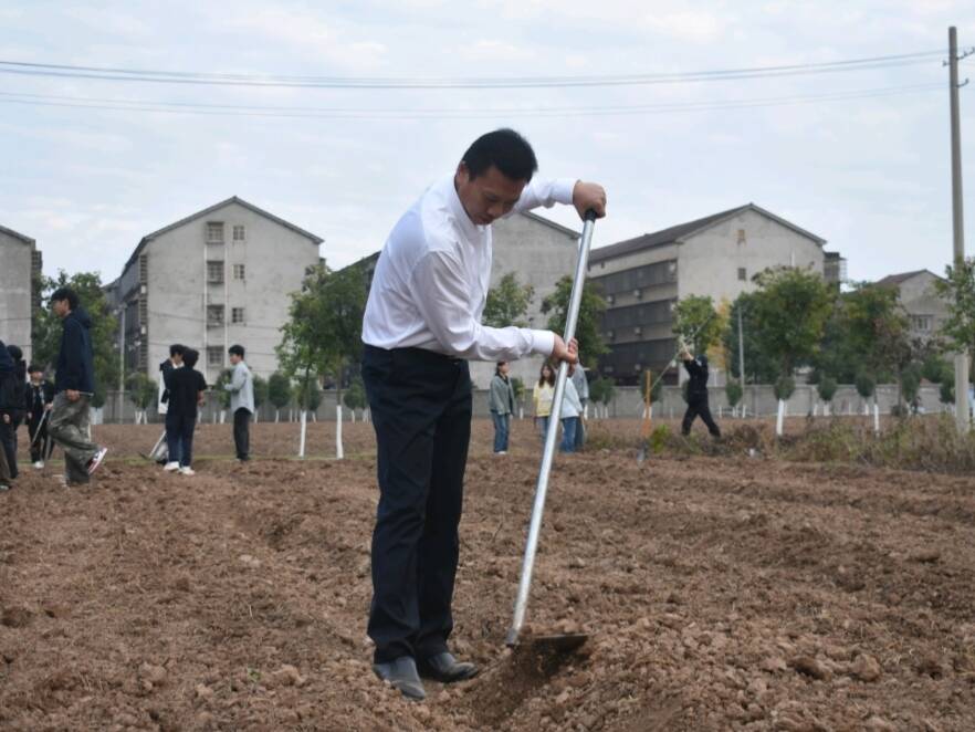 (通讯员 代阳光 张颖旭)为深入贯彻“五育并举”育人理念,引导2025级本科生在劳动实践中深化专业认知、锤炼劳动品格,11月13日下午,我院校外实验基地开展了一场以“锄地播种”为主题的新生劳动教育实践活动。学院党委书记王辉、院长周明芹、副书记黄仙、副院长张威威,全体辅导员以及班主任瞿金旺老师共同参与,与同学们一起挥锄翻土、拣选种子、挖坑播种,全程投入劳动各个环节。师生们卷起衣袖、脚踏泥土,在身体力行中感知农业的温度,体会劳动的意义。