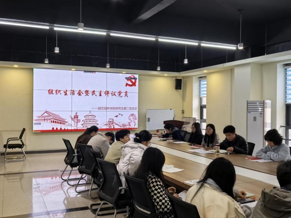 (通讯员:费若璇) 2026年3月12日12:30时,园艺园林学院研究生第二党支部在农科大楼2001会议室召开了2025年度组织生活会暨党员民主评议暨三月主题党日活动。与会成员有研究生第二党支部书记吴山老师、支部全体党员,会议由何文静同志主持。会议共分为五项议程:一是开展组织生活会,进行党员个人自评;二是开展民主评议;三是学习党的理论知识;四是开展主题研讨;五是重温入党誓词。