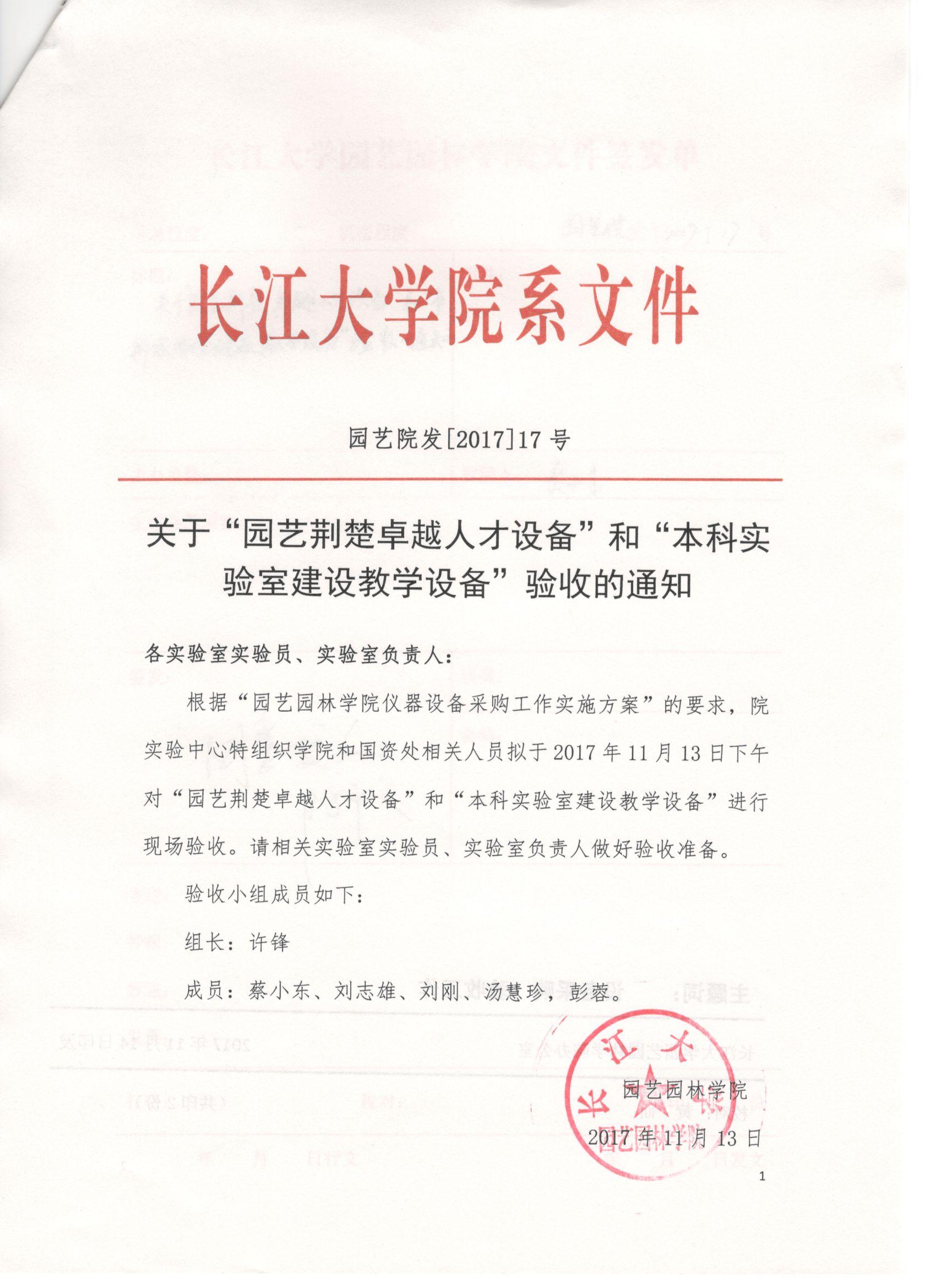 园艺院发[2017]17号-关于“园艺荆楚卓越人才设备”和“本科实验室建设教学设备”验收的通知