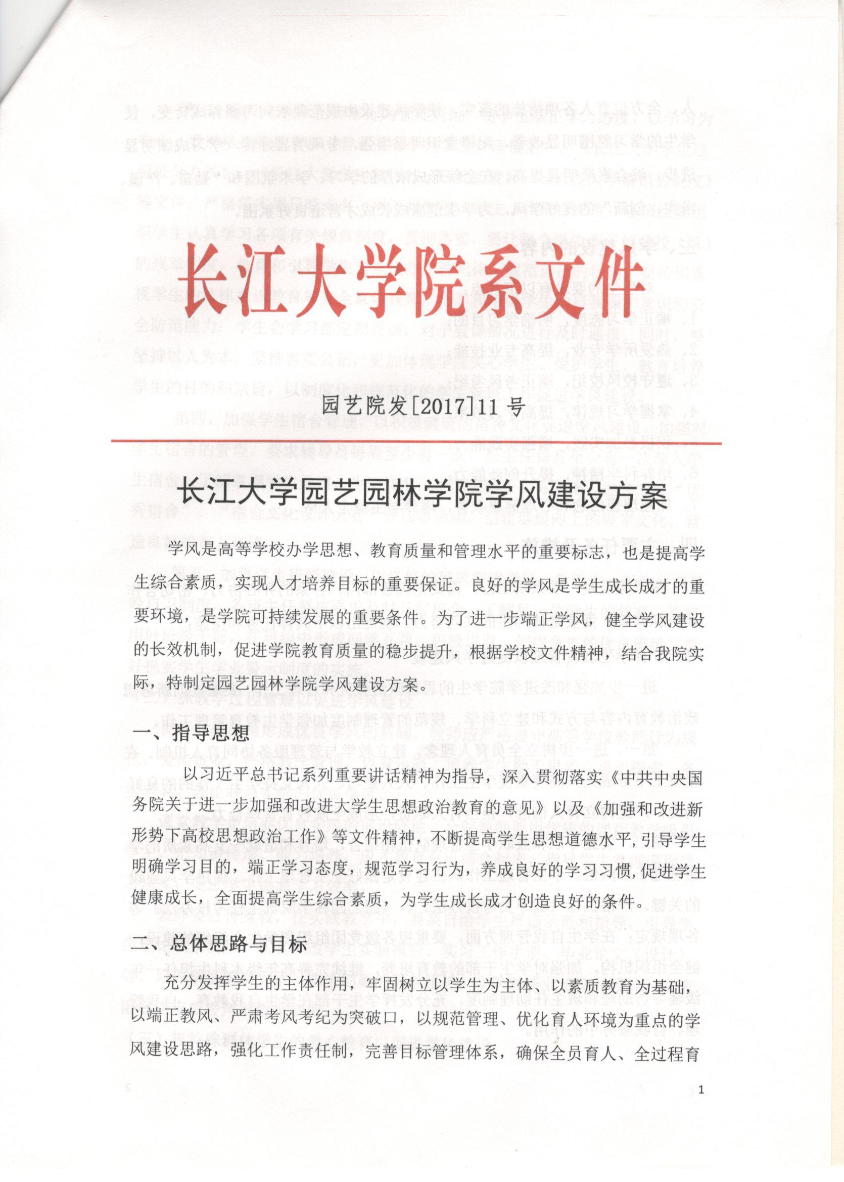 园艺院发[2017]11号-长江大学园艺园林学院学风建设方案