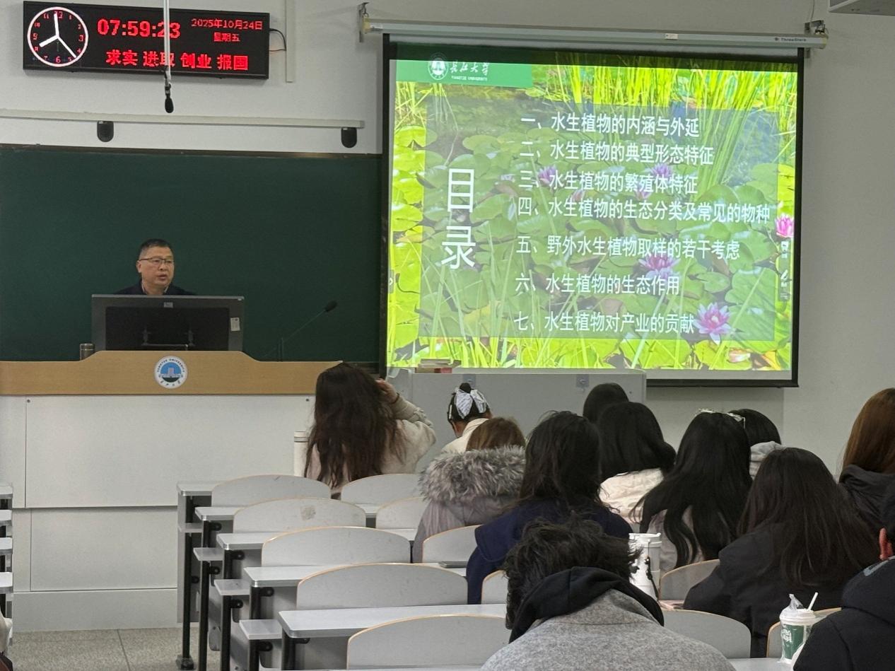 (编辑:刘阳)2025年10月24日上午8时,园艺园林学院求实导师学术沙龙活动在西校区7教303成功举办了题为“浅谈水生植物资源及应用”的学术报告。本次讲座特邀袁龙义教授担任主讲人,全校众多师生踊跃参与,现场气氛热烈。