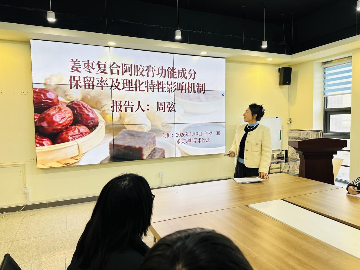 (通讯员 马佳伟)1月9日下午,园艺园林学院在农科大楼2001A举办了一场“求实导师学术沙龙”活动,由周弦老师担任主讲人,以“姜枣复合阿胶膏功能成分保留率及理化特性影响机制”为核心议题,香辛作物创新团队课题组全体老师及研究生参与了本次学术交流与研讨。