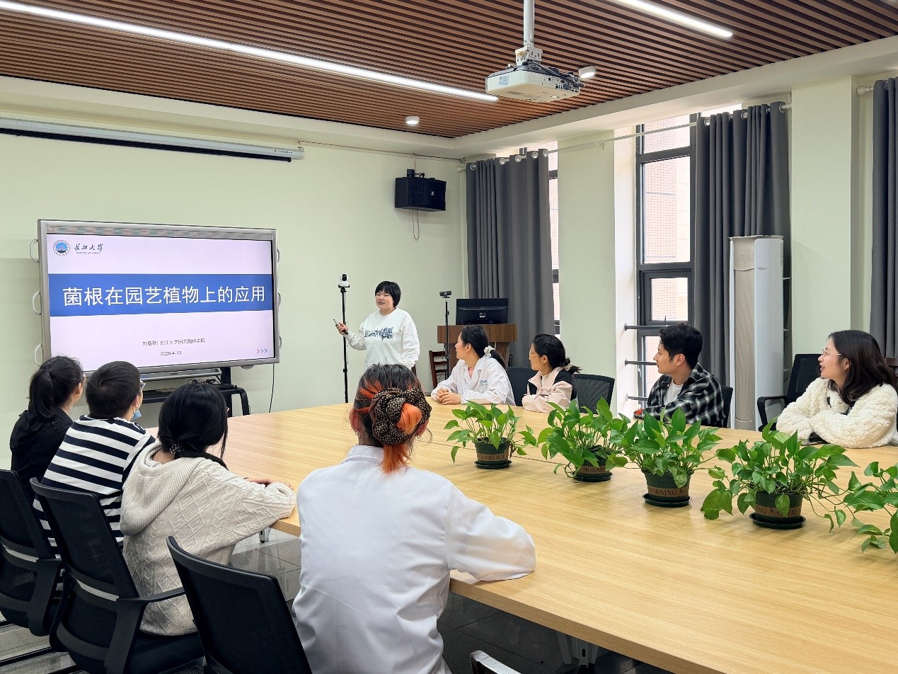 (通讯员 鲁薇)2026年4月13日下午,长江大学园艺园林学院“求实导师学术沙龙”系列讲座在农科大楼3002B如期举行。刘春艳副教授为师生们带来了一场题为“菌根在园艺植物上的应用”的讲座,分享了菌根在柑橘、蔬菜及花卉等园艺植物中的研究基础、作用机制与应用成效。
